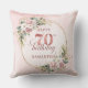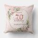Celebrate 70 years in style with this shimmering rose gold pillow. Featuring dusty pink, blush pink, and light pink watercolor flowers, lush greenery, eucalyptus accents, and a gold frame, this boho, floral, and bohemian design makes a perfect gift for a 70th birthday pillow.