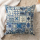 travesseiro decorativo de 20" x 20" com imagem de um design holandês delft. Marinho de volta.