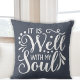 Este travesseiro baseado na fé apresenta o título de um popular hino cristão antigo - "É bom com a minha alma". Design apresenta um texto branco sobre fundo azul, tanto o texto quanto a cor de fundo podem ser modificados para o seu estilo exclusivo.