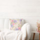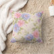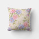 Este travesseiro tem um fundo de creme suave com padrões rosas cor-de-rosa e azuis.