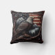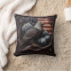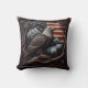 Uma escultura detalhada de uma águia majestosa empoleirada em um galho, colocada contra um pano de fundo com montanhas e a bandeira americana.