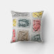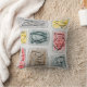 Eames inspirou o design do travesseiro, mão do estilo do meio século tirada pelo artista. Azul, vermelho, verde, ouro e marrom compo as cores neste design do meio século duplicado pròxima de uma amostra de folha de barkcloth do vintage.