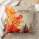 A escritura inspiradora de aspas cai aquarela travesseiro decorativo retrata lindas árvores com folhas coloridas vermelhas e laranja no outono. Ele apresenta a Bíblia Verse Eclesiastes 3:11, "Ele fez tudo bonito em seu tempo."