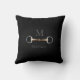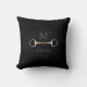 Para equestrianos e amantes de cavalos, este belo travesseiro apresenta uma ilustração trompe l'oeil de um pedaço de fenda de bico de cobre entre seu monograma e nome.