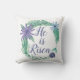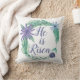 Ele é Risen. Um belo travesseiro religioso com uma bela coroa floral de roxo e verde. Estas lindas flores aquáticas se regozijam com Jesus Cristo. Bonito presente cristão. O dorso é um roxo adorável.