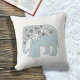 O design do produto apresenta um perfil silhuetado azul de um elefante decorado com padrão paisley.