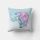 Elefante floral azul-roxo, branco, sobre fundo azul-claro gradiente