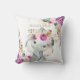 A almofada adorável com o tema da selva apresenta um doce elefante para bebês e elegante verde tropical aquarela e flores em blush e violeta.