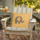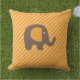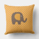 Travesseiro exterior com uma faixa diagonal cor de laranja e de sherbet com um elefante marrom com orelhas laranja.