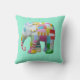 Um design de um elefante de retalhos em cores do arco-íris pastel contra um fundo azul-claro do céu. Este animal é um brinquedo chorudo, infantil, inspirado na design de um popular elefante Savannah, africano.