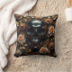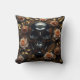 Um travesseiro decorativo luxuoso com um crânio preto rodeado de folhas de ouro e rosas cor-de-rosa macia na frente, aliado a um padrão sutil de flor de cinza no verso. Esse design versátil combina sofisticação escura com sotaques florais suaves, perfeito para adicionar um toque de encanto gótico a qualquer espaço.