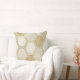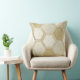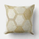 A seamless geometric pattern throw pillow featuring a refined grid of hexagonal shapes outlined in metallic gold. Each hexagon contains intricate designs such as parallel lines, cross-hatching, and abstract geometric motifs. The background blends soft cream and beige tones with a subtle marble-like texture, creating a sophisticated, luxurious aesthetic.