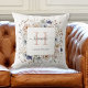 Almofada Elegant Monogram Pretty Beige Blue Flowers Floral