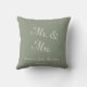 Elegant Sage Green and White Mr.and Mrs Name Date Script Throw Pillow