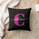 This monogram and first name throw pillow makes a bold yet minimalist statement. The pink and white monogram and name against the black pillow makes it a perfect accent piece for your family room sofa or bedroom reading nook. This double-sided pillow can be customized with two modern and beautifully complementary script and typography styles. Enjoy it in your home or give it as a custom keepsake gift to family and friends for birthdays, anniversaries, house warmings and more..