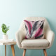 Esta design de pena impressionante apresenta uma elegante mistura de fúcsia, preto, cinzas e branco sobre um fundo cor-de-rosa macio.
