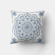 Lindo travesseiro decorativo delicadamente decorado no tema mandala indiano, nas cores branco e azul metálico.