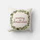 Este maravilhoso e elegante travesseiro de Natal apresenta uma coroa de frutas sagradas e verde de inverno rodeando as palavras "Feliz Natal" em escrituras escritas à mão vintage. O fundo é branco de marfim. A parte de trás do travesseiro apresenta um vermelho profundo. Esta é uma bela travesseiro a acrescentar à sua decoração festiva da casa, e está certo de aquecer a sua casa. Design por T.K. Vá em frente.