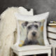 Uma ilustração de uma Miniatura Schnauzer decora esses travesseiros decorativos bonito.