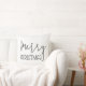Este travesseiro apresenta um moderno design minimalista com uma elegante letra de tipografia do "Feliz Natal" e é um presente perfeito para a sua casa ou para outra pessoa durante as férias.