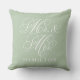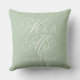 Travesseiro de sotaque quadrado elegante para casais felizes e recém-casados apresenta um roteiro branco, Sr. e Sra. design, com um texto monográfico personalizado que pode ser personalizado com o sobrenome casado. A cor verde de fundo do sábio pode ser personalizada para coordenar com as cores de decoração de casa ou do quarto.