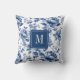 Um belo monograma azul e branco com um padrão floral de jardim inglês decorou este travesseiro decorativo. Personalize com o seu monograma inicial. Projetado para você por Blackberry Boulevard.