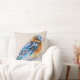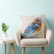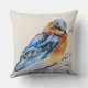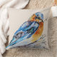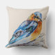 Um belo e elegante travesseiro decorativo da natureza que apresenta um pássaro azul primavera de cor d'água pintado manualmente em um ninho.