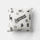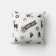 Um travesseiro decorativo com uma repetição perfeita a preto/branco de elementos de Natal - meias, gingerbreadman, flocos de neve, renas, Enfeites de natal, velas, árvore de Natal e as palavras "Feliz Natal" - em ilustração. Pode ser adequado para ocasiões solenes de Natal.
