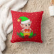 Elf, pinheiro, poinsettia e estrelas ouros de Natal verde e giro no Travesseiro decorativo vermelho.