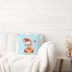 Elfo de Natal bonito e pássaro vermelho cardeal no Travesseiro decorativo de turquesa. Texto útil pode ser personalizado.
