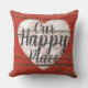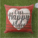 Simples motivação e inspiração bonitinha Nosso Lugar Feliz Cita texto em um roteiro elegante de caligrafia de cinza escura, em um bonito e branco motif em um fundo vermelho de madeira de caserna de fazenda de cor vermelha.