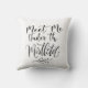 Entre no espírito festivo com esta bela travesseiro decorativa de Natal. Design apresenta "Encontre-me sob o mistério" em um belo roteiro de letras pretas em um fundo branco. Na moda de decoração de Natal para esta época festiva. design duplo.