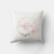 Adorável menina macia e fofinho travesseiro de cor rosa-claro, rosa empoeirado, folhas verdes de cinza clara e brancas com bolinhas. Pintado, cor d'água, coroa floral com monograma, nome e data de nascimento da opção. Faz um presente perfeito para recém-nascidos, chás de fraldas, anos... uma adorável decoração personalizada para o berçário! Faz um excelente de manutenção!