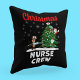 Esta divertida e festiva travesseiro decorativo de Natal apresenta uma árvore de férias decorada com material médico lúdico, perfeito para enfermeiras e heróis da saúde. Uma rena alegre segura uma seringa cheia de chocolate, enquanto os Papais noeis espreitam por trás da árvore de Natal, trazendo humor de férias e alegria sazonal.