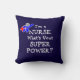"Sou enfermeira. Qual é o seu super poder?" travesseiro decorativo projetado por medida.