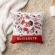 O travesseiro decorativo de futebol desta menina legal apresenta uma "explosão" de bolas de futebol vermelhas, pretas e brancas em tamanhos variados e cinzas e formas de estrelas vermelhas, sobre as quais você pode personalizar seu número de camisa - a estrela vermelha tem um pequeno padrão de bolinhas brancas - personalize o nome do atleta em uma faixa vermelha na borda inferior do travesseiro - katz_d_zynes