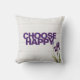 Texto "Choose Happy" com íris roxa em madeira branca/