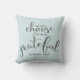 Simples design de travesseiro decorativo com citação: "Podemos Escolher Ser Gratos, Não importa o que" na tipografia escrita à mão. Texto de Cinza claro sobre fundo azul-claro de cinza. Sempre personalizável se quiser alterar o tamanho do tipo ou a cor do plano de fundo! Basta clicar no botão personalizar.