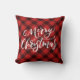 Adicione um toque festivo e rústico à sua casa adicionando nossos travesseiros decorativos de feriados do Escova Script. Os travesseiros de Natal apresentam "Feliz Natal" em um roteiro branco, escrito à mão, com um fundo com xadrez de cor-d-água vermelha e preta com padrão.