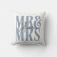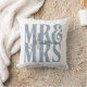A Caligrafia Moderna Escreve o Sr. Travesseiro decorativo Azul da Sra. Wedding Dusty. Personalize seu sobrenome e todas as cores do texto para corresponder à sua casa.