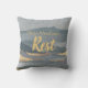 Este travesseiro decorativo elegante tem um palete colorido de blues e goldes para ajustado sua decoração caseira. Ele mostra as próprias palavras de Jesus nos lembrando de descansar. Personalize-o facilmente como um presente com o nome da pessoa com quem você se importa que precisa ser lembrada para descansar.