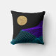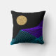 O Travesseiro decorativo azul-preto azul-púrpura e Abstrato Quântico apresenta um abstrato azul-aqua e preto no espaço com uma esfera-planeta de ouro brilhante no canto superior esquerdo flutuando acima das ondas quânticas geométricas em roxo e verde formando um desenho abstrato quântico contra um fundo preto. Vai bem com decor contemporâneo, boho, espiritual ou eclético. Veja mais belos designs personalizados e coordenados com um tema espiritual em nossa loja em zazzle.com/NextDimension.