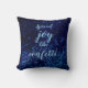 Neste travesseiro deslumbrante estão misturando sombras de confete azul em um pano de fundo azul real escuro onde no centro você pode personalizá-lo com uma letra, nome ou logotipo ou manter como está a frase "espalhar alegria como confete" criando vibrações alegres. Tema de confete azul-sonhador.