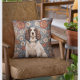 Elegante Spaniel no Travesseiro decorativo Floral de Fundo — uma maravilhosa fusão de elegância canina e beleza artística. Este belo travesseiro decorativo apresenta um espanhol elegante, encanto e graça exuberantes, colocado contra um impressionante fundo floral. O intrincado padrão floral adiciona um toque de sofisticação e talento, fazer este travesseiro como um acréscimo cativante a qualquer espaço vivo.