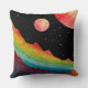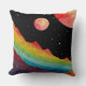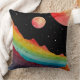 Uma paisagem cósmica surreal com montanhas vibrantes de aquarela e uma cordilheira brilhante sob um céu estrelado. Três corpos celestes sobrevoam-se, lançando um sonho, um ambiente de outro mundo. Essa trabalho de arte combina fantasia e estética espacial, perfeita para sonhadores e estargazistas.
