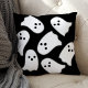 Celebre o Halloween em estilo com este travesseiro decorativo bonito com um padrão de fantasmas voadores assustadores. Design de dois lados em preto, branco, cinzas de carvão e cinzas de luz.