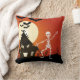 Esqueleto da dança, sepulturas, uma casa assombrada, Lua cheia e bastões - cena perfeita por um dia do Dia das Bruxas.