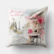 Esquema de Aquarela da cidade de Paris com Travesseiro decorativo de Nome Personalizado da Mulher.