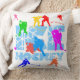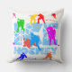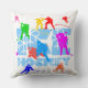 Os flocos de neve decoraram texto de Hockey de cor azul e imagens coloridas de silhuetas de jogadores de hóquei. Engraçado, elegante, de tipo único através do travesseiro para qualquer um. Jogue hóquei, divirta-se e seja feliz!