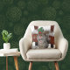 Há um esquilo na sua sala de estar! Ou quarto ou pavimento (com tecido exterior)... Este travesseiro mostra uma foto de um esquilo alegre que parece estar vestindo um chapéu elven divertido enquanto a neve cai por toda parte. Eu tirei esta foto de um esquilo que adorava andar ao redor do nosso baralho na neve, e adicionei um pequeno "chapéu" gráfico para uma diversão de Natal. Espero que goste deste elfo de esquilo em neve em sua casa.